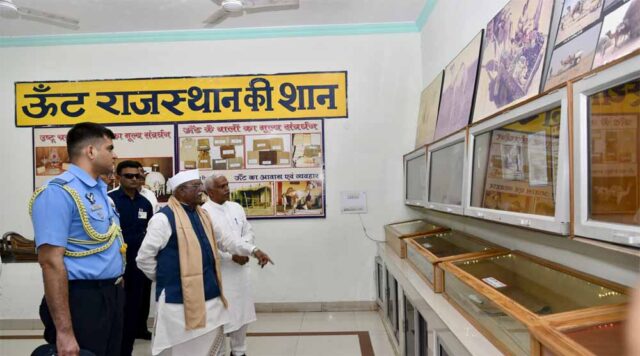 राज्यपाल हरिभाऊ बागडे ने मंगलवार को बीकानेर स्थित भारतीय कृषि अनुसंधान परिषद के उष्ट्र अनुसंधान केन्द्र का अवलोकन किया। राज्यपाल ने यहां के उष्ट्र संग्रहालय का भ्रमण किया। यहां ऊँटों की विविध नस्लों, ऊँटों के बहुआयामी उपयोग, ऐतिहासिक परिप्रेक्ष्य में ऊँटों के योगदान, उष्ट्र व्यवहार तथा लक्षण, उष्ट्र दुग्ध तथा उष्ट्र पर्यटन संबद्ध गतिविधियों की सामग्री का अवलोकन किया। श्री बागडे ने ऊँट के बाल, खाल व हड्डी से बने विभिन्न उत्पादों को देखा। इस दौरान राज्यपाल ने ऊंटनी के दूध से बनी लस्सी का स्वाद भी चखा। उन्होंने केन्द्र द्वारा ऊँटनी के दूध पाउडर की सराहना की। राज्यपाल ने उष्ट्र सवारी स्थल का भ्रमण किया तथा उष्ट्र पालकों से संवाद भी किया।