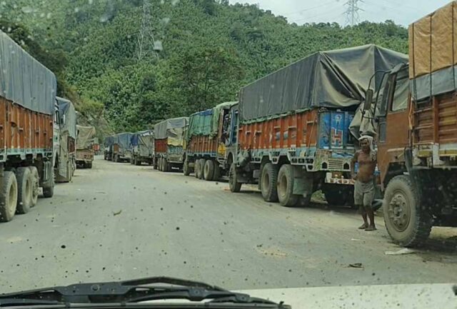 इंफाल में एक वरिष्ठ अधिकारी ने बताया कि इंफाल-जिरीबाम राष्ट्रीय राजमार्ग (एनएच-37) और इंफाल-दीमापुर राष्ट्रीय राजमार्ग (एनएच-2) पर विभिन्न स्थानों पर सैकड़ों माल से लदे और खाली ट्रक, साथ ही परिवहन ईंधन ले जाने वाले टैंकर फंसे हुए हैं।