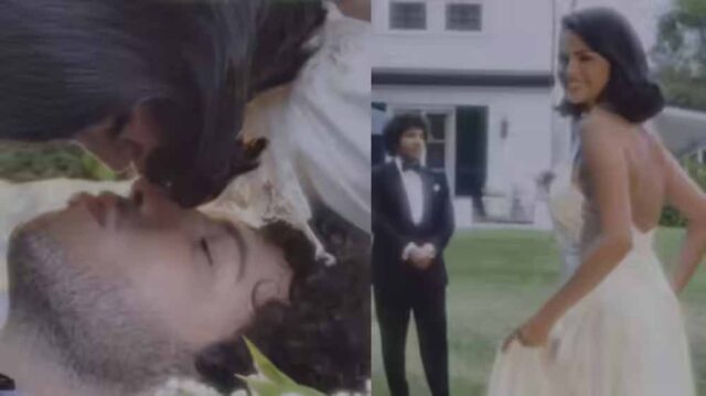 अपनी शादी में, सेलेना गोमेज ने फूलों की सजावट वाली सफेद हॉल्टर ब्राइडल ड्रेस पहनी थी। बेनी ब्लैंको ने टक्सीडो और बो टाई पहनी थी। पोस्ट शेयर करते हुए, सेलेना ने बस इतना लिखा, '9.27.25।'