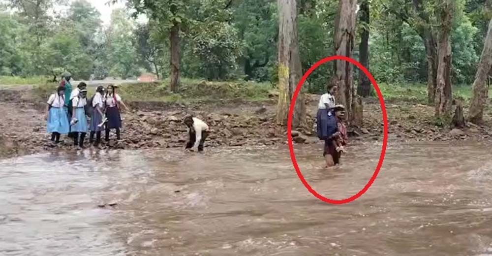 तेज बारिश के कारण नदी का जलस्तर बढ़ने से बच्चे घंटों तक नदी किनारे फंसे रहे. बारिश में भीगते हुए खड़े मासूम बच्चों को देखकर गांव के कुछ ग्रामीणों ने अपनी जान की परवाह न करते हुए बारी-बारी से उन्हें नदी पार कराया.