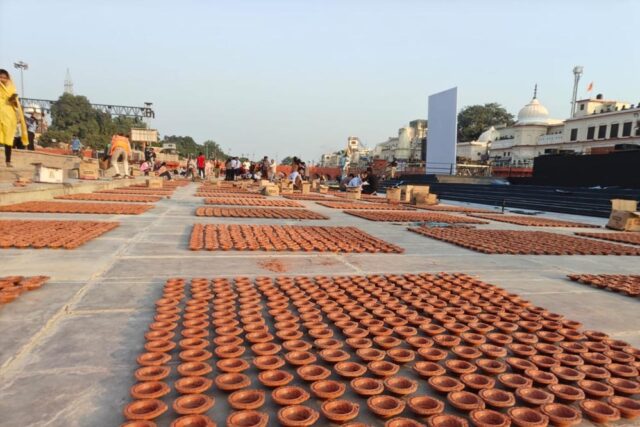 56 घाटों पर शुरू हुआ दीप सजाने का कार्य, 28 लाख दीपों की तैयारी