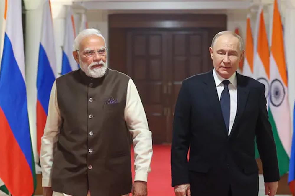 रूस के राष्ट्रपति दो दिनों के भारत दौरे पर हैं। आज यात्रा के दूसरे दिन उनका राष्ट्रपति भवन में भव्य स्वागत किया गया। इसके बाद हैदराबाद हाउस में प्रधानमंत्री मोदी और रूसी राष्ट्रपति ने द्विपक्षीय वार्ता की। इस वार्ता के बाद दोनों नेताओं ने एक साझा बयान जारी किया है। राष्ट्रपति पुतिन के साथ साझा बयान में PM मोदी ने कहा कि भारत-रूस की दोस्ती ध्रुव तारे की तरह चमक रही है। पीएम मोदी ने बताया कि दोनों देशों ने सभी मंचों पर सहयोग और संवाद जारी रखने का फैसला किया है। उन्होंने कहा कि भारत सभी रूसी नागरिकों के लिए 30 दिन का नि:शुल्क ई-टूरिस्ट वीजा जारी करेगा।