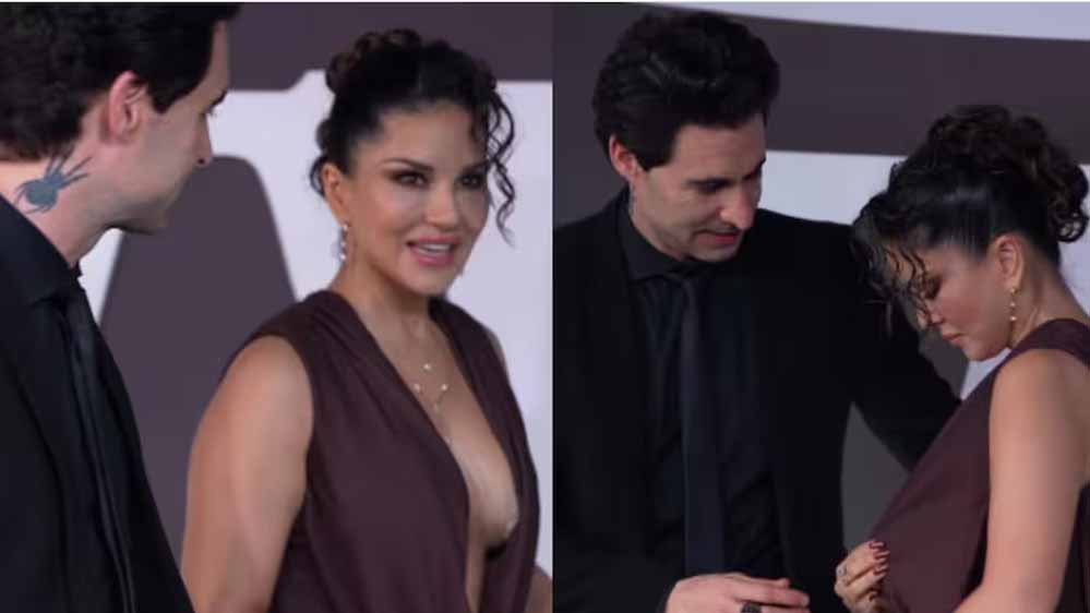असल में हुआ ये कि इवेंट में एक्ट्रेस Oops मोमेंट का शिकार हो गईं. सनी ने डीप ब्राउन कलर का फ्लोर-लेंथ गाउन पहना था, जो ड्रामेटिक और सोफिस्टिकेशन से भरा था. गाउन में प्लंजिंग V-नेकलाइन थी. उन्होंने मिनिमल लेकिन स्ट्राइकिंग एक्सेसरीज चुने- नेकलाइन को हाइलाइट करने वाले लेयर्ड नेकलेस, स्टेटमेंट ड्रॉप इयररिंग्स और रिंग्स, जो ग्लैमर ऐड कर रहे थे. हेयर को चिक अपडू में स्टाइल किया.
