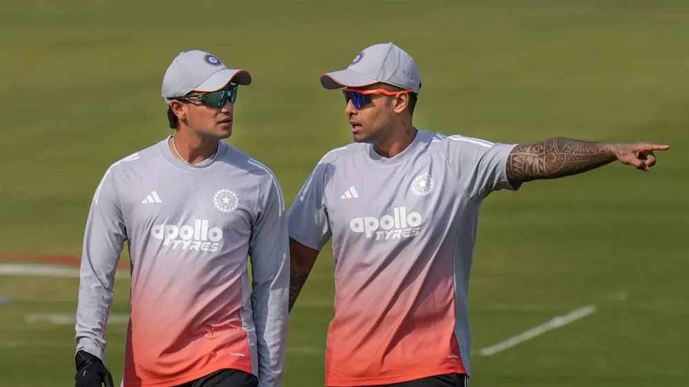 मंगलवार शाम फ्लडलाइट्स में हुए अभ्यास में ईशान किशन सबसे पहले बल्लेबाजी के लिए उतरे, जबकि संजू सैमसन उनके साथ पेस बॉलिंग नेट में नजर आए. दोनों ने हार्दिक पंड्या, शिवम दुबे, अर्शदीप सिंह और एक लंबे बाएं हाथ के नेट गेंदबाज का सामना किया, जिसे नामीबिया के तेज गेंदबाज रूबेन ट्रम्पेलमैन जैसी एंगल तैयार करने के लिए इस्तेमाल किया गया.