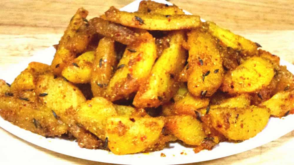 जब आलू हल्के सुनहरे हो जाएं तो गैस बंद कर दें। ऊपर से बारीक कटा हरा धनिया डालकर गार्निश करें।