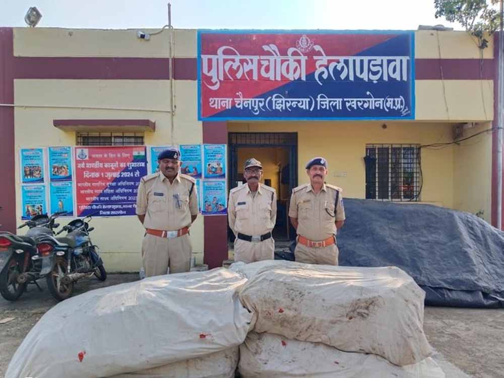 प्रदेश में अवैध मादक पदार्थों के विरुद्ध की जा रही सख्त एवं निरंतर कार्यवाहियों के क्रम में खरगोन पुलिस को एक बड़ी सफलता प्राप्त हुई है। ऑपरेशन “प्रहार” के अंतर्गत खरगोन पुलिस द्वारा चौकी हेलापडावा, थाना चैनपुर क्षेत्र में अवैध गांजे की खेती करने वालों के विरुद्ध प्रभावी कार्रवाई करते हुए दो अलग-अलग स्थानों से 5900 गांजे के पौधे, कुल वजन 2979 किलो 840 ग्राम, अनुमानित कीमत 1 करोड़ 49 लाख 4 हजार 200रूपए(लगभग एक करोड़ उनचास लाख चार हजार दो सौ रुपये) का अवैध मादक पदार्थ जप्त किया है।यह कार्रवाई दुर्गम एवं शेडो एरिया (नो मोबाइल नेटवर्क जोन) में की गई, जहाँ पुलिस टीम को कई घंटों तक कठिन परिस्थितियों में कार्य करना पड़ा।