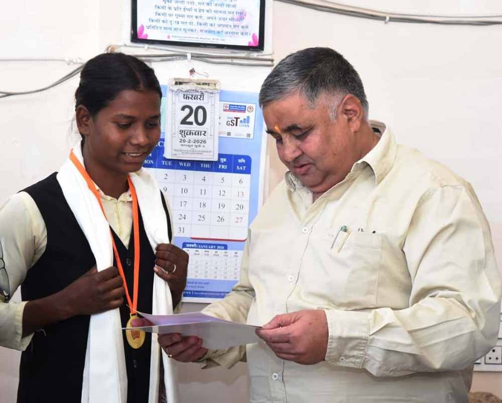 पर्यटन मंत्री राजेश अग्रवाल ने हैमर थ्रो में राज्य स्तर पर तृतीय स्थान प्राप्त करने वाली छात्रा सुधा सिंह को किया सम्मानित