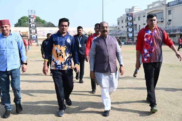 उप मुख्यमंत्री तथा खेल एवं युवा कल्याण मंत्री अरुण साव ने शुक्रवार को रायपुर प्रेस क्लब द्वारा सुभाष स्टेडियम में आयोजित स्वर्गीय कुलदीप निगम स्मृति इंटर-प्रेस क्रिकेट टूर्नामेंट के फाइनल मुकाबले में पहुंचकर पत्रकार खिलाड़ियों से आत्मीय मुलाकात की और उनका उत्साहवर्धन किया। उन्होंने खेल मड़ई के सफल आयोजन के लिए रायपुर प्रेस क्लब और पत्रकारों को बधाई दी।