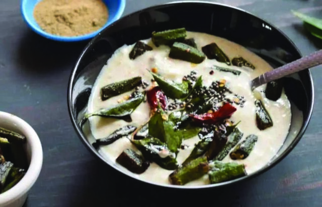 अब दही में फ्राई की हुई भिंडी डालकर हल्के हाथ से मिक्स करें।