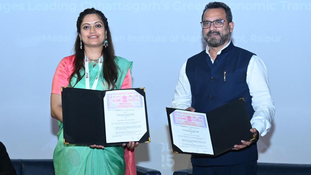 छत्तीसगढ़ में हरित विकास को जनभागीदारी से साकार करने की दिशा में एक उल्लेखनीय पहल करते हुए आज भारतीय प्रबंधन संस्थान रायपुर तथा ट्रांसफॉर्म रूरल इंडिया संस्था के संयुक्त आयोजन में पाँचवाँ भारत ग्रामीण संवाद–2025 सफलतापूर्वक सम्पन्न हुआ। गाँवों के नेतृत्व में छत्तीसगढ़ की हरित आर्थिक बदलाव की यात्रा विषय जिसमें प्रदेश को हरित दिशा में आगे ले जाने की रणनीति पर गहन विचार-विमर्श हुआ।