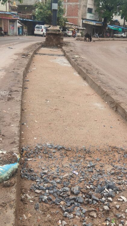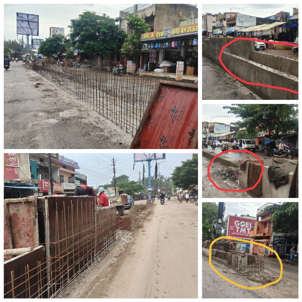 मुंगेली नगर पालिका क्षेत्र अंतर्गत गौरवपथ निर्माण कार्य में भारी लापरवाही और भ्रष्टाचार देखने को मिल रही हैं, जनप्रतिनिधियों और नेताओं द्वारा भी निर्माण की गुणवत्ता और ठेकेदार द्वारा किये जा रहे सुरक्षा मानकों, उपायों की अनदेखी पर सवाल उठाया जा रहा हैं। लगभग 5 करोड़ रुपये की लागत से रायपुर रोड खड़खड़ियाँ नाला पास से पड़ाव चौक तक गौरव पथ स्वीकृत हुआ है जिसमें अभी डिवाइडर निर्माण का कार्य चल रहा हैं लेकिन इसमें गुणवत्ता का बिल्कुल ध्यान नहीं रखा जा रहा है। डिवाइडर निर्माण के लिए जो बेस डाला गया था, बारिश के बाद उसमें ज्यादा मात्रा में रेत दिख रहा हैं। साथ ही सुरक्षा उपायों को भी ठेकेदार द्वारा दरकिनार कर दिया गया हैं जिससे राहगीरों की जान खतरे में हैं, यह बहुत ही व्यस्ततम मार्ग हैं जहां भारी वाहन भी चलते हैं, बसें भी गुजरती हैं, स्कूली बच्चे भी पैदल और सायकल से आना जाना करते हैं, लगातार आवागमन वाले इस मार्ग में निर्माणाधीन डिवाइडर में ठेकेदार द्वारा सुरक्षा मानकों, सुरक्षा उपायों की अनदेखी की जा रही, आवागमन से सटकर ही छड़ें बाँधी जा रही, जो खुली स्थिति में हैं, जिसका नुकीला हिस्सा राहगीरों के लिए खतरा बना हुआ हैं, ठेकेदार द्वारा न ही सेफ्टी रिबन लगाया गया और न ही अन्य सुरक्षा मापदंडों का पालन किया जा रहा हैं ऐसे में अगर कोई दुर्घटना होती हैं तो कौन जिम्मेदार होगा ?